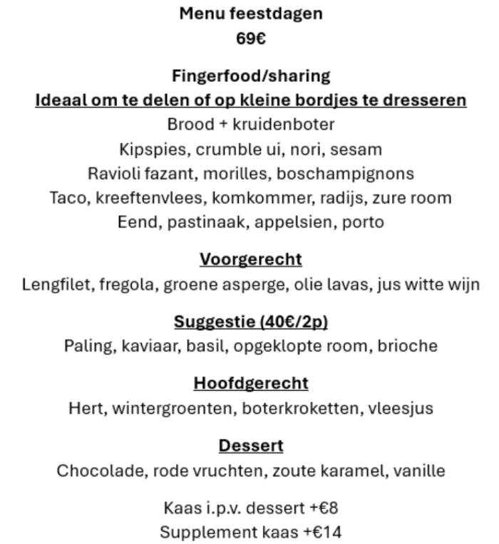 - catering op maat in overleg met de chef.