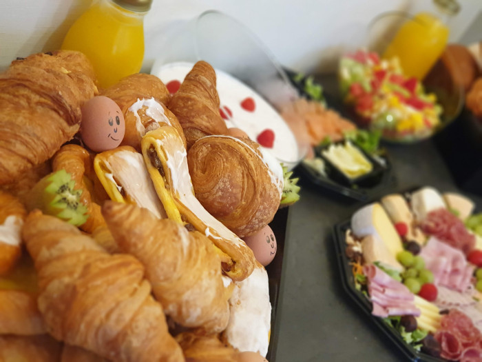 Ontbijtbuffet bestaande uit heerlijk assortiment voor de zoetenbek onder jullie of eerder een gezond ontbijt.