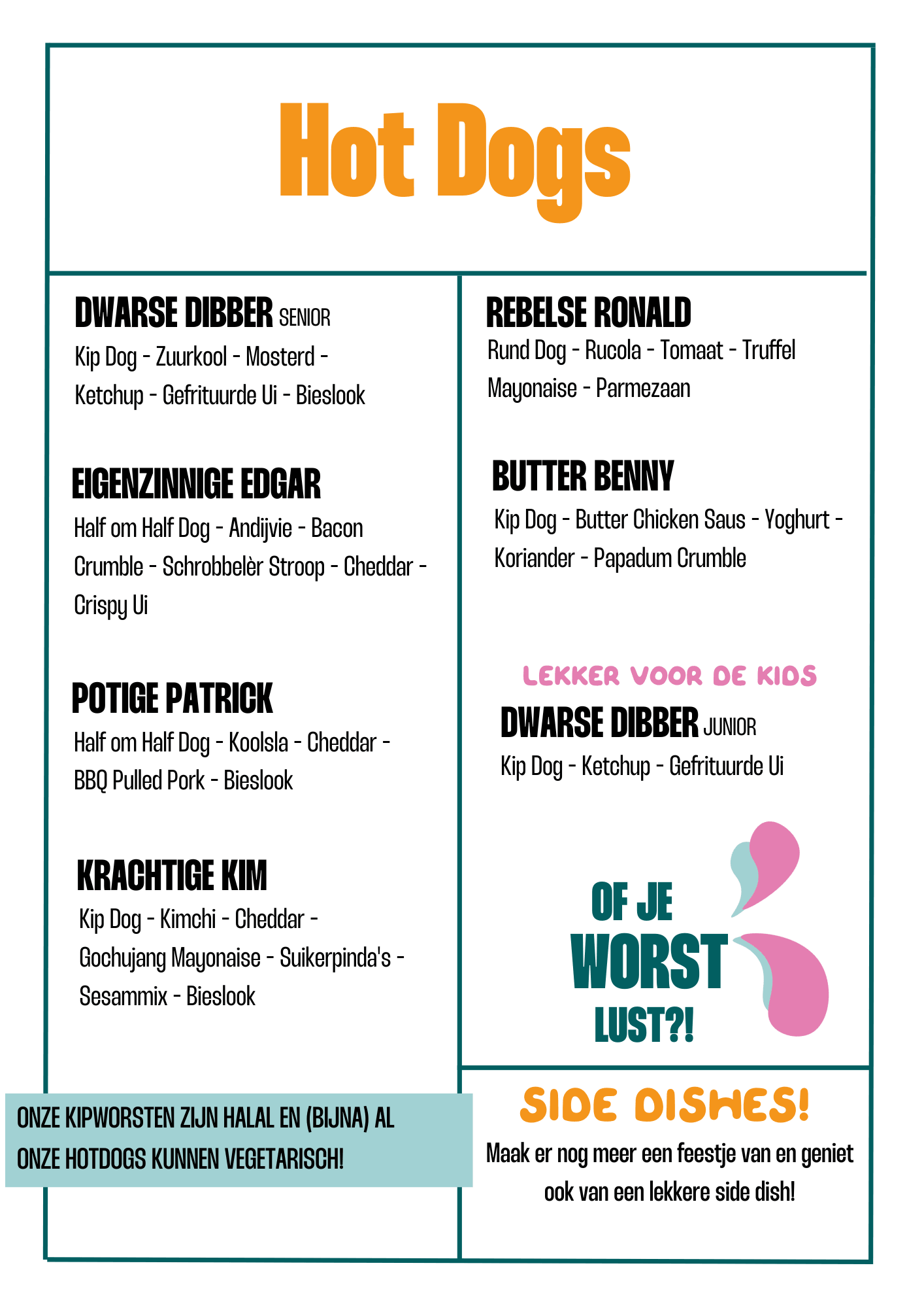 We staan op diverse soorten evenementen. Van bruiloften, festivals en zakelijk evenementen. Wij maken onze hotdogs passend voor jouw event.