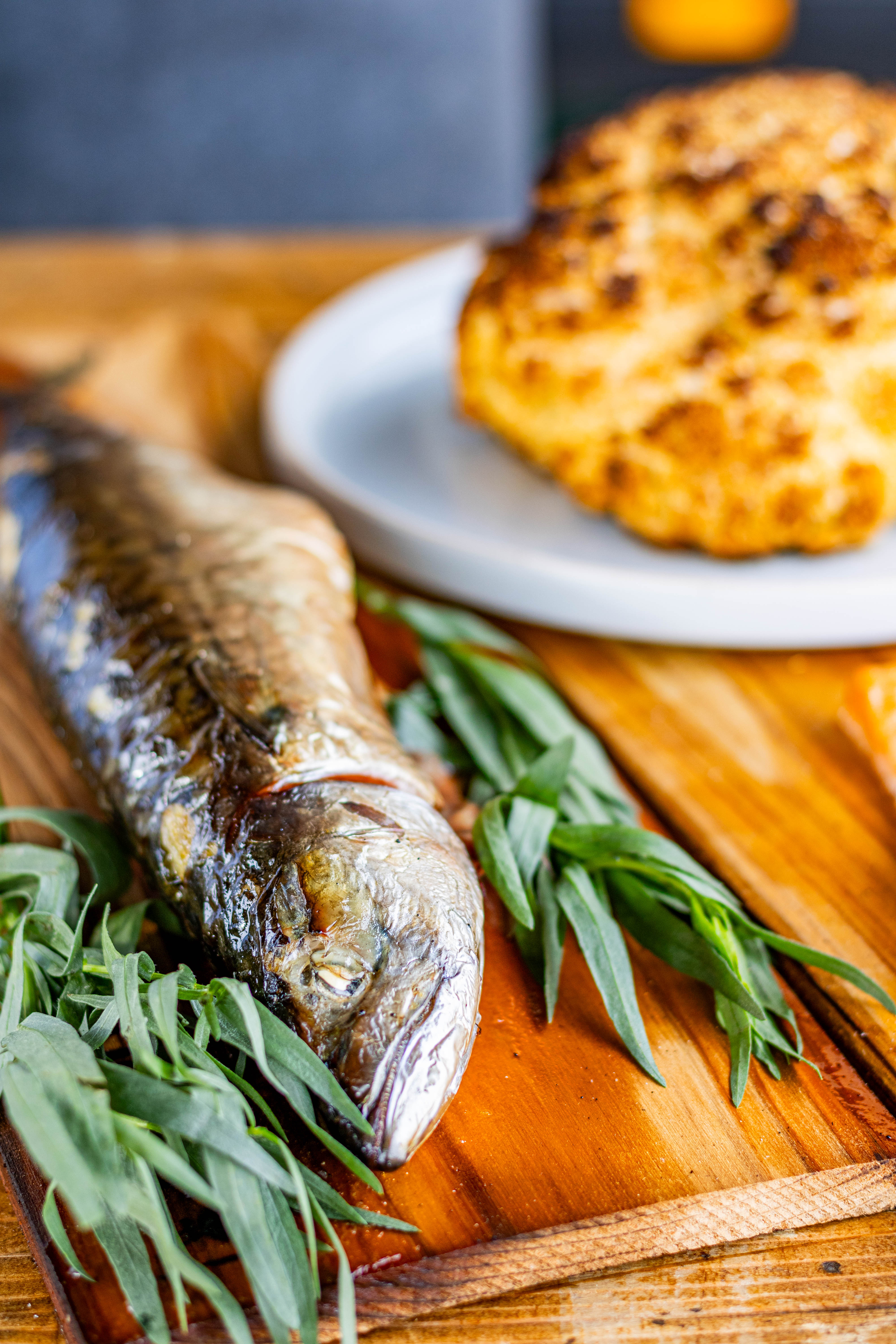- De pens: gegrilde witte pens met gebakken appel.