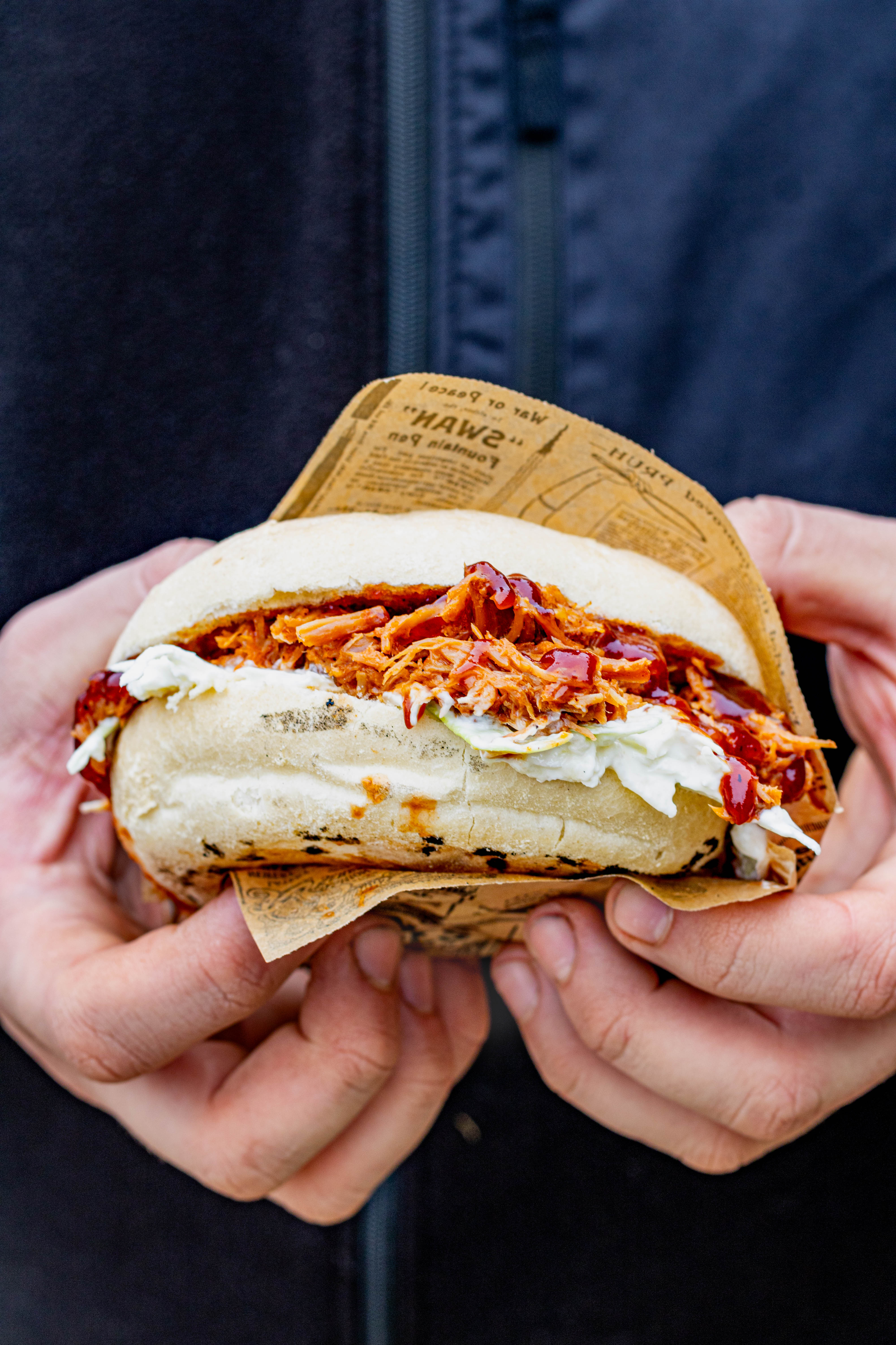 - Low and slow: Onze 9 uur traag gegaard pulled porc met knapperige koolsla op een heerlijk broodje.