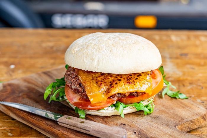 - De Black Angus burger: Vers gegrild black Angus vlees met truffel mayonaise en cheddar.