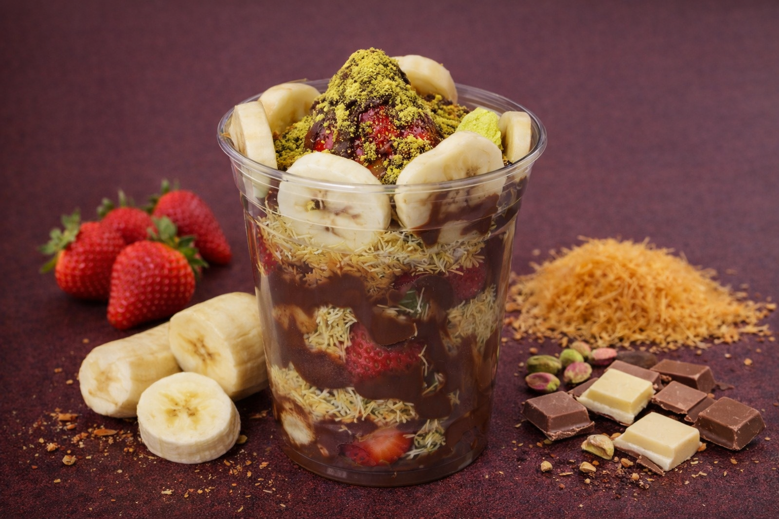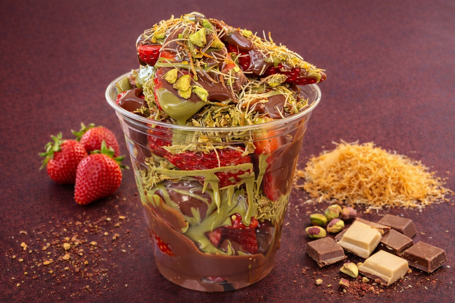 Ontdek onze kleurrijke fruitbekers en luxe Dubai strawberry cups - rijkelijk belegd met verse aardbeien, chocoladesaus en onze geheime toppings. Of probeer onze iconische Dubai wafels: Een explotie van smaak, stijl en docaratie.